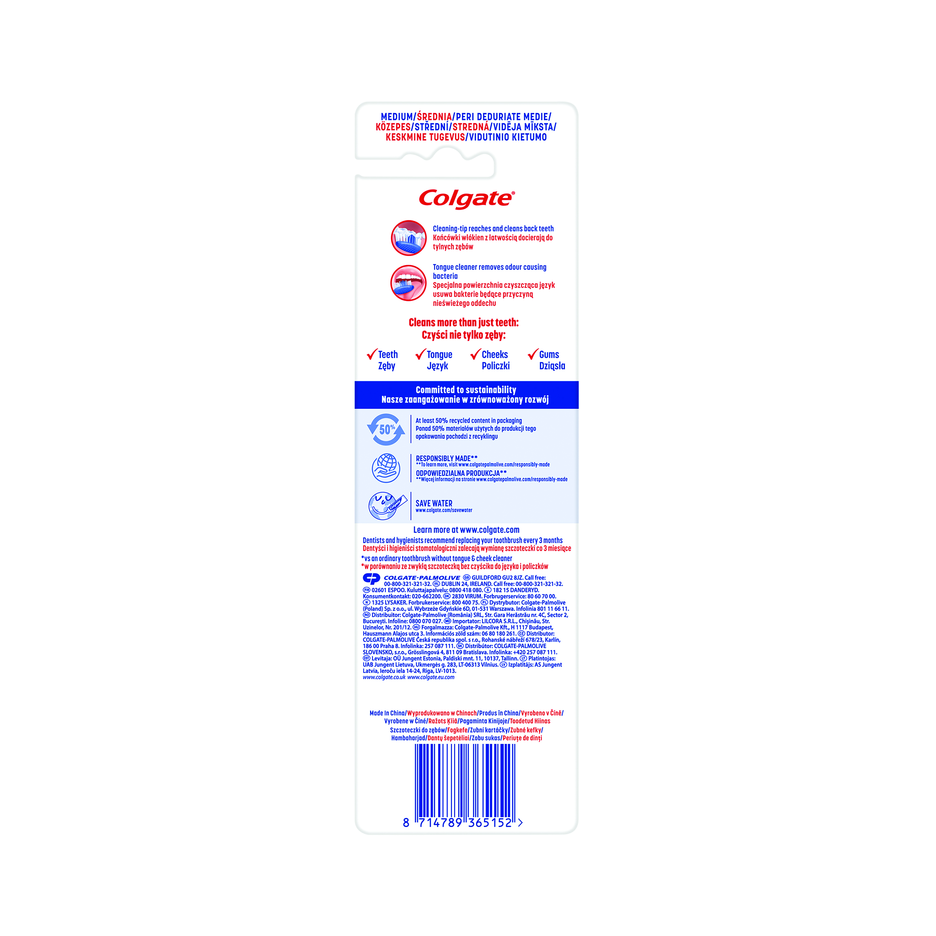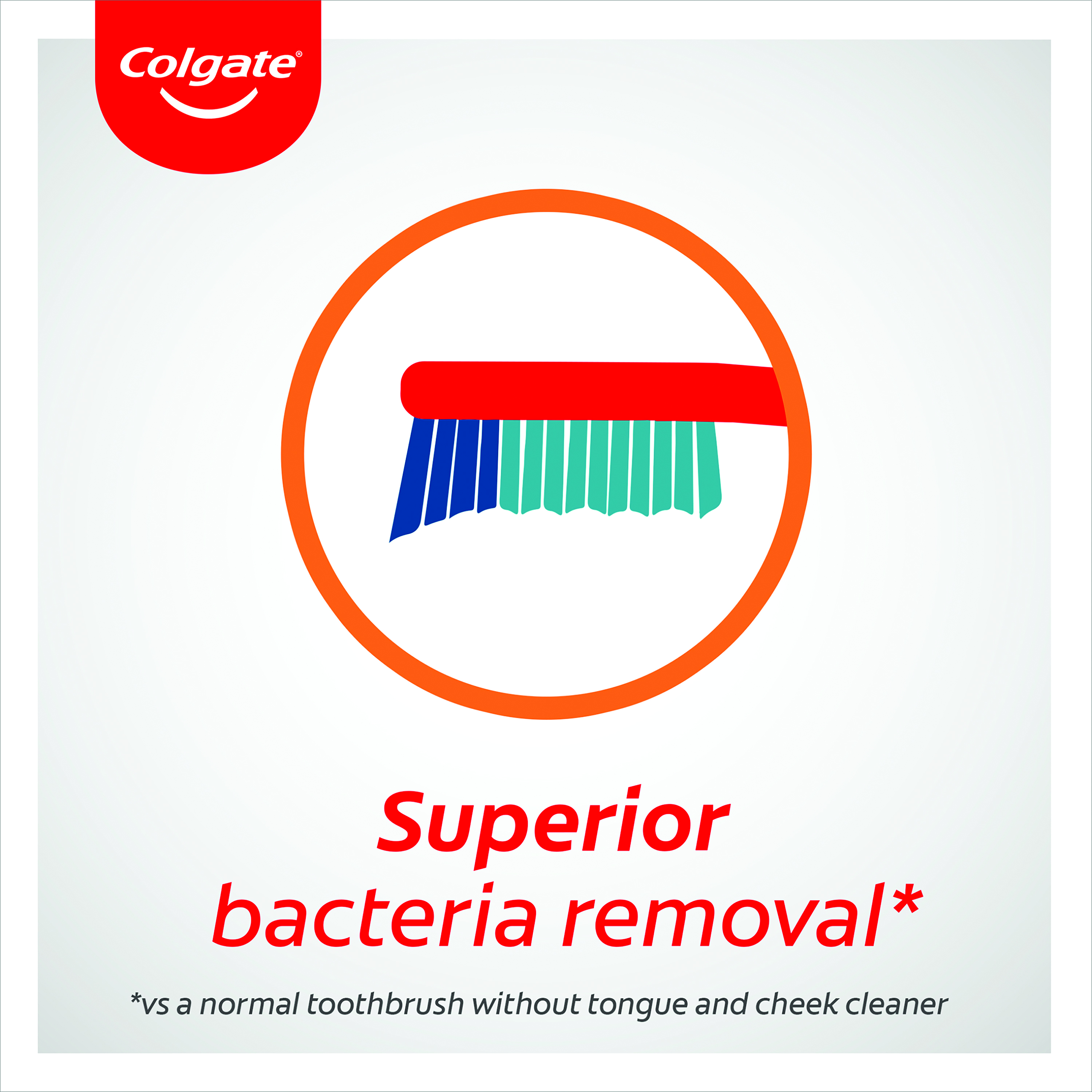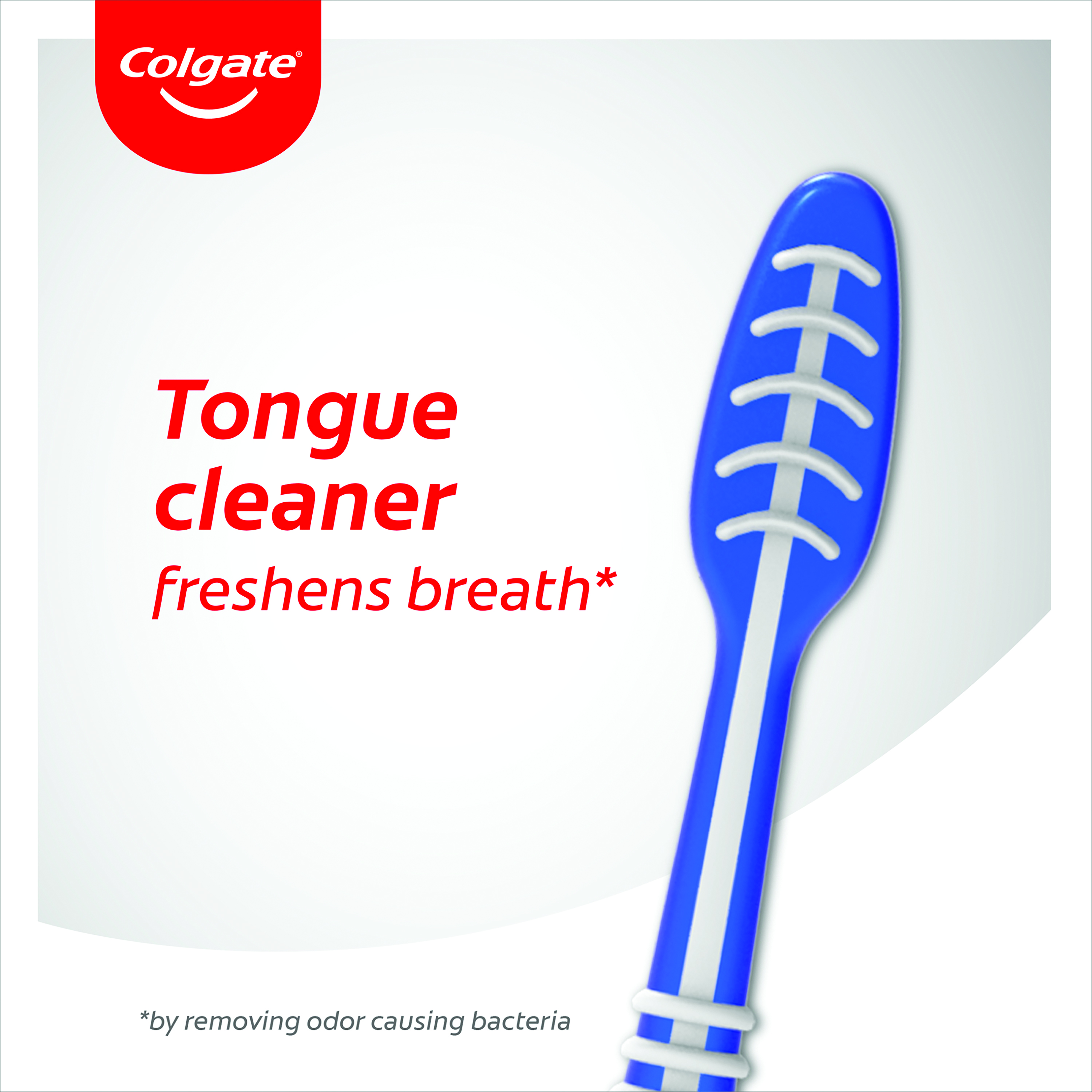 Healthy, happy smiles start with the Colgate Extra Clean Toothbrushes. These toothbrushes have been designed with a cleaning tip for a thorough clean, even of your back teeth. The manual toothbrushes also have a tongue cleaner that gently removes odour causing bacteria for extra confidence. Providing superior bacteria removal with the tongue and cheek cleaner. Supplied in a pack of 12 with each pack containing 3 toothbrushes.